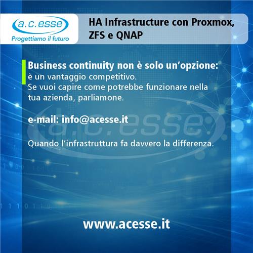 Infrastrutture HA con Proxmox, ZFS e QNapNegli ultimi anni molte aziende hanno iniziato a sentire sempre più il bisogno di avere un’infrastruttura IT davvero affidabile, capace di reggere senza problemi anche di fronte a guasti improvvisi o manutenzioni non pianificate. Una delle soluzioni più efficaci che ho avuto modo di implementare combina tre elementi che lavorano sorprendentemente bene insieme: Proxmox, ZFS e una coppia di NAS QNAP configurati per sincronizzare i dati in tempo reale.