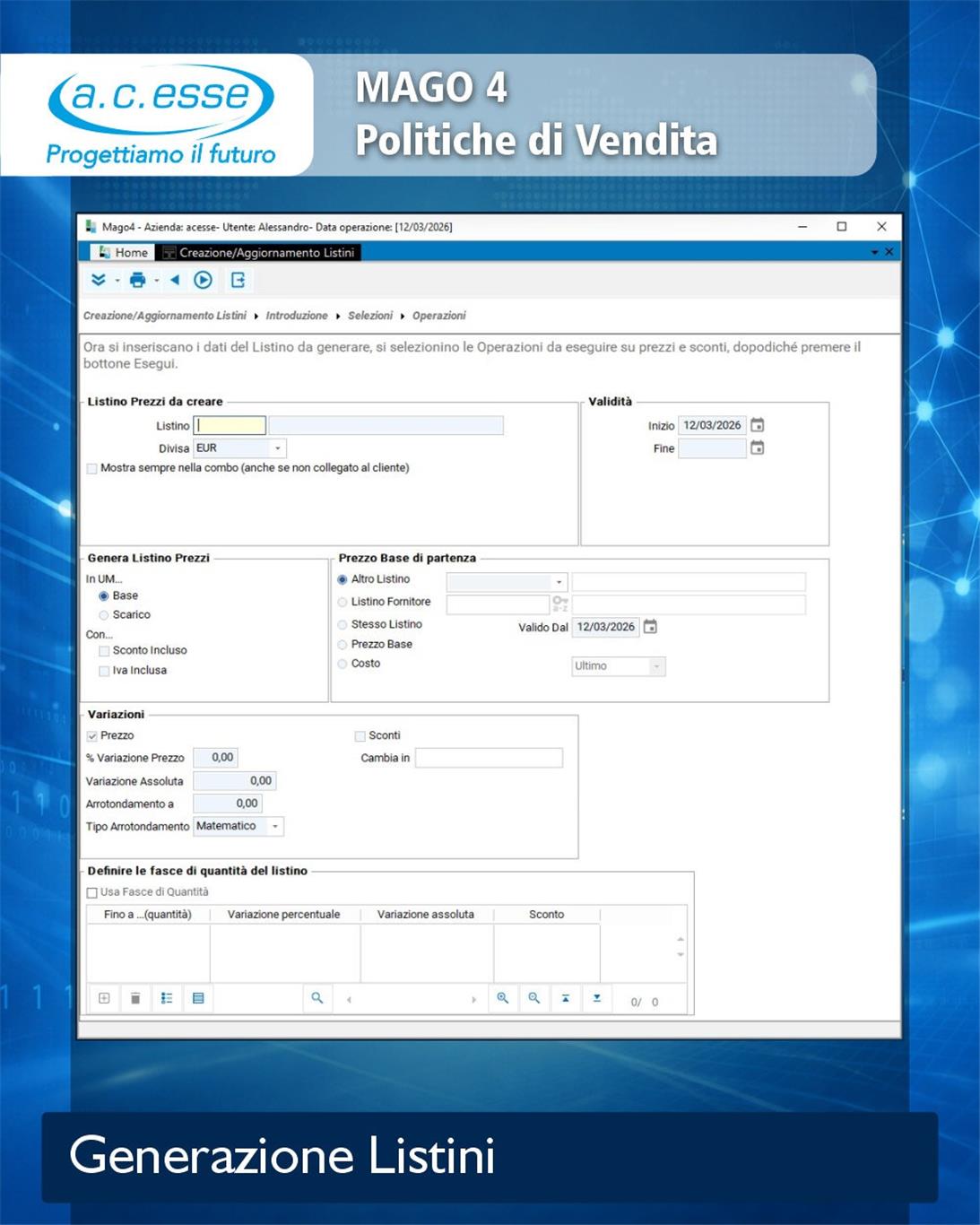 Una delle funzioni più utili di Mago4 è la generazione di un nuovo listino prezzi.