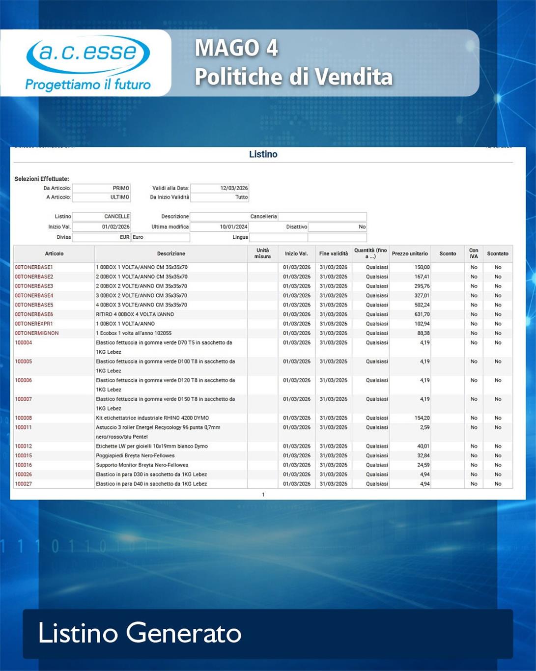 Una delle funzioni più utili di Mago4 è la generazione di un nuovo listino prezzi.
